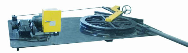 该设备由主板和弯曲模组成,配两套模具。直模在电机减速机牵引下,将压在圆模上的钢杆沿圆弧面弯曲,操作简单,无须加热及填充物,经济实惠,较本行业的大型弯管机有异曲同工之功效,是钢杆生产厂家必备之设备。